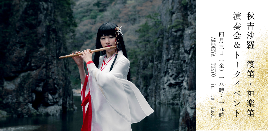 秋吉沙羅氏を迎え、篠笛神楽の演奏とトークをお続きいただける貴重な機会となっております。